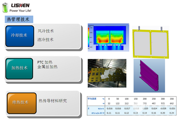 热分析技术;我们公司通过ANASY流程分布和温度分布的分析,对电池的结构和布置提供一个方案,我们根据方案去设计我们电池系统,能保证我们热场分布,从而保证系统的安全性和可靠性,提高系统的寿命。