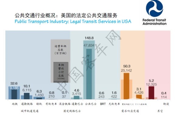在美国的法定公共交通系统当中,公共交通划分为固定线路和需求响应两种模式,这是法律上的概念。大家会看到联邦公共交通局在统计公共交通服务的时候,前半部分是轨道交通以及固定线路的公共巴士,后面是需求响应交通,以及轮渡服务。