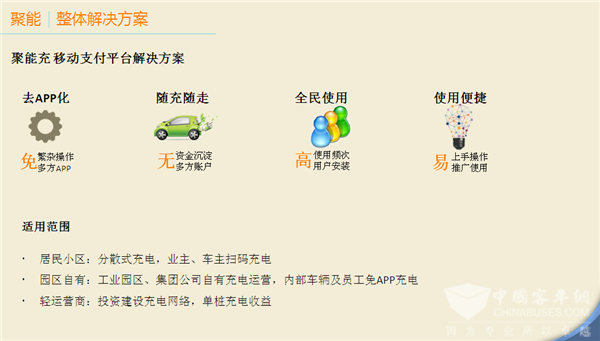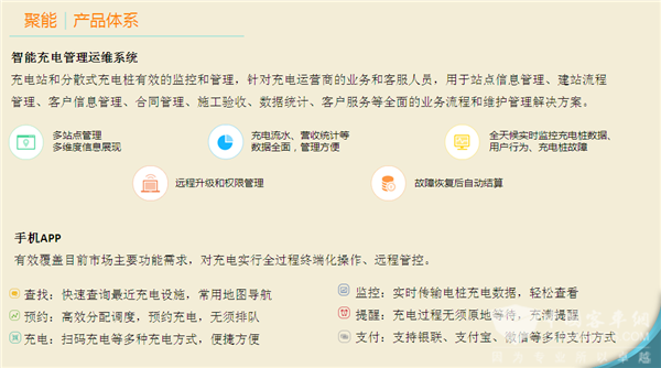 三大整体解决方案,一个是城市级车桩网,主要是无锡应用,第二是“内容+”充电服务,第三是聚能充移动支付平台。