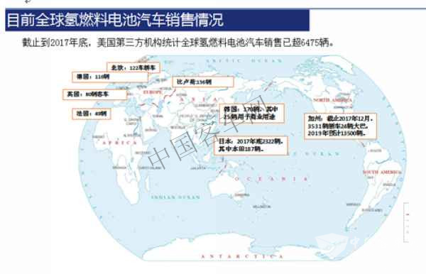 截止到2017年底,美国第三方机构统计全球氢燃料电池汽车销售已超6475辆。 其中: