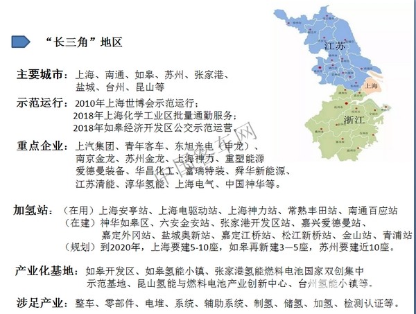 有了上海的龙头带动效应,“长三角”氢能产业犹如千树万树梨花开放,江浙的如皋、南通、苏州、盐城、台州、昆山等城市纷纷响应。