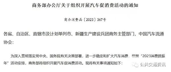 近日,商务部办公厅发布关于组织开展汽车促消费活动的通知,以稳定和扩大汽车消费。商务部将亲自组织开展汽车促消费活动,活动时间为2023年6月至12月。《通知》提到,结合“2023消费提振年”工作安排,统筹开展“百城联动”汽车节和“千县万镇”新能源汽车消费季活动。