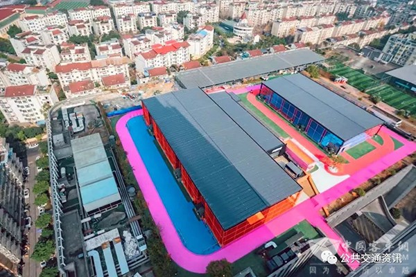 同时,成都公交集团以大运会为契机,利用金沙公交枢纽站停车楼楼顶空间,打造全国首个城市公交天空森林体育公园项目,占地面积约12000㎡,目前共建成2个标准篮球场、2个五人制足球场、1个街舞场馆、1座综合运动馆、400米全民健身步道以及200米专业级跑道,还将陆续配套运动康复等社区便民服务。