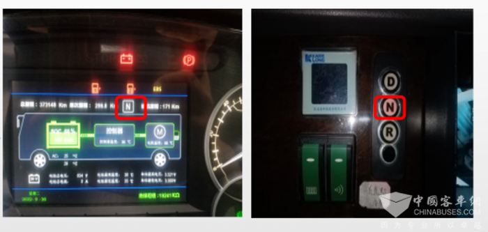 纯电动公交车上高压条件之二,车辆档位操作面板需处于N档(空档)状态。
