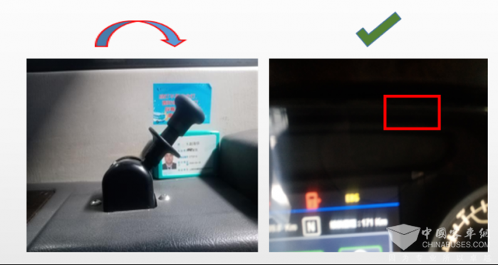 纯电动公交车正常行驶条件之一,车辆驻车制动阀须处于释放状态(手柄朝前)。
