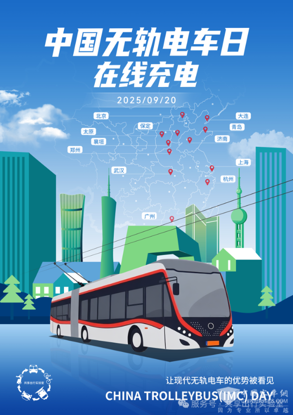 编者按:2025 年 9 月,交通运输部、公安部、民政部、国家机关事务管理局、中华全国总工会、共青团中央、中国残疾人联合会开展《绿色出行宣传月》和《公交出行宣传周》活动。结合欧洲各地城市、运营商及合作伙伴举行第十五届《欧洲无轨电车日 - IMC》,全国公共交通学科首席科学传播专家王健倡导:现有无轨电车城市的利益关系人(制造商、运营商、乘客、无轨电车爱好者等),在2025 年 9月 22 日开展《中国无轨电车日-在线充电》(China Trolleybus-(IMC) Day)活动,旨在传递无轨电车支持可持续、包容且面向未来的公共交通的坚定信号 ,让现代无轨电车的优势被看见!