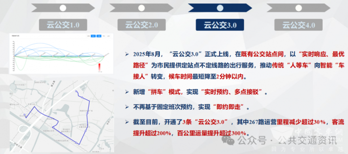 “云公交3.0”不再依托于固定班次预约,乘客“即约即走”,出行体验大幅提升,公交出行吸引力明显增强。