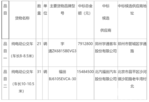 - 2025年新能源公交车采购项目(一标段)中标结果公告