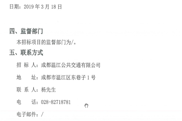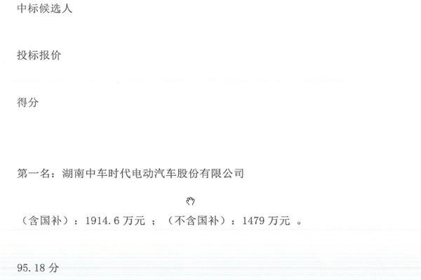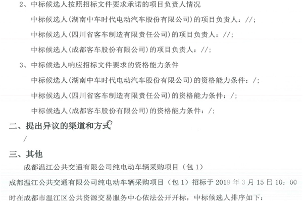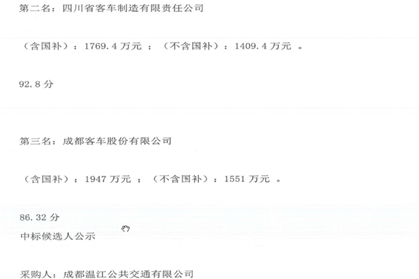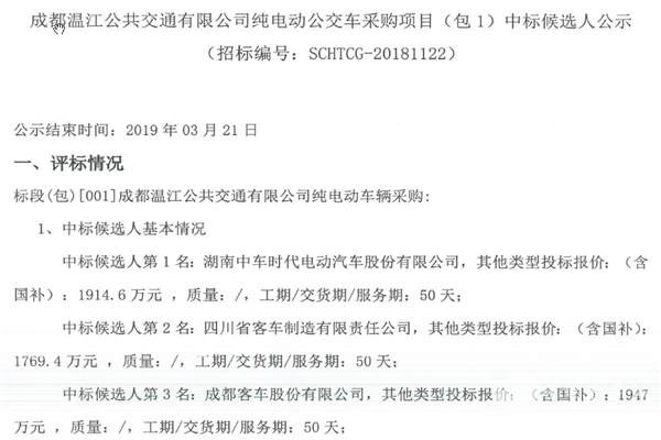 成都温江公交公司关于纯电动公交车采购项目(包1)中标候选人公示