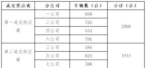 根据中标评分的高低,成交供应商份额根据本项目涉及营运车辆数约6:4配置。