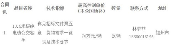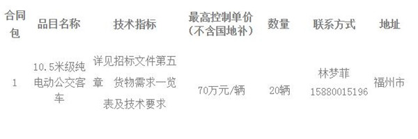 福州经济技术开发区公交集团10.5米级纯电动空调公交车采购项目