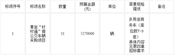 台州市黄岩区政府采购中心关于台州市公交巴士有限公司黄岩“村村通”微公交车辆采购项目的公开招标公告