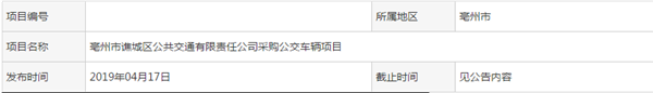 安徽省豪州市蕉城区公共交通有限责任公司采购公交车辆项目中标公示