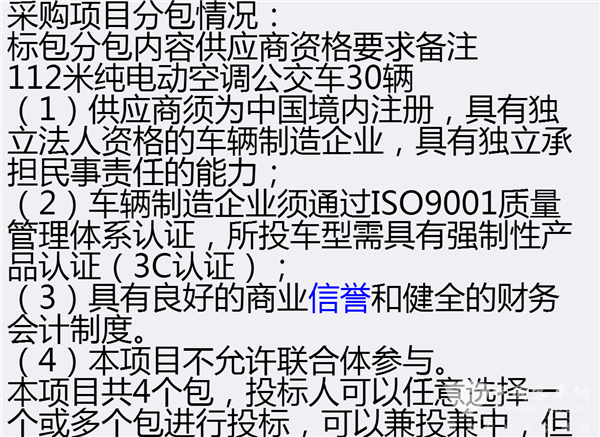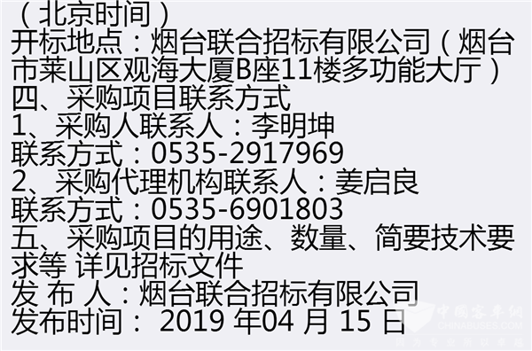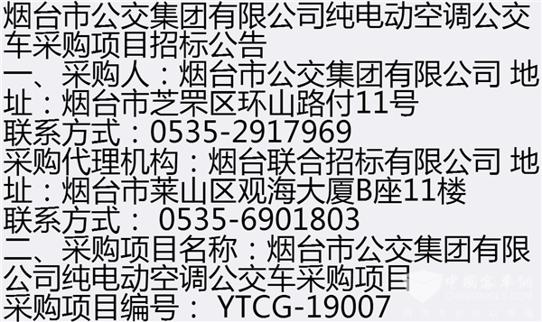 山东烟台市公交集团纯电动空调公交车采购项目招标公告
