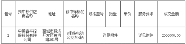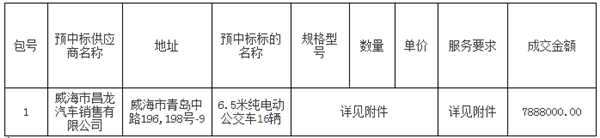 荣成市公共交通有限公司关于纯电动公交车采购项目公开招标中标公告