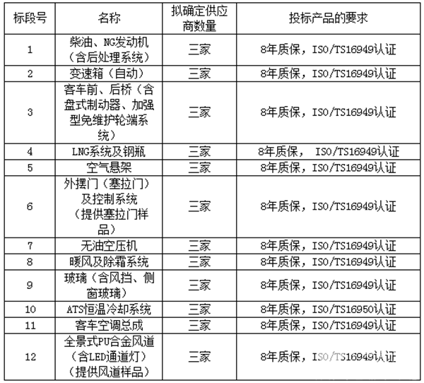 扬州市2019年度新能源及清洁能源公交车零部件供应商入库招标项目招标公告