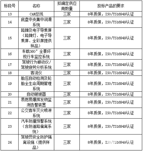 注:第15、16、17、18、19、21、22、23标段必须接入扬州公交海信系统。