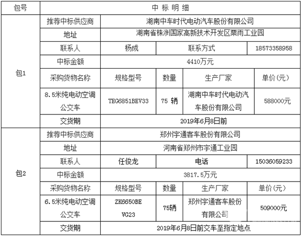 受娄底市公共交通有限公司的委托,对娄底市公共交通有限公司150台纯电动空调公交车采购项目进行公开招标,经评标委员会评审,采购人确认,现将中标信息公告如下: