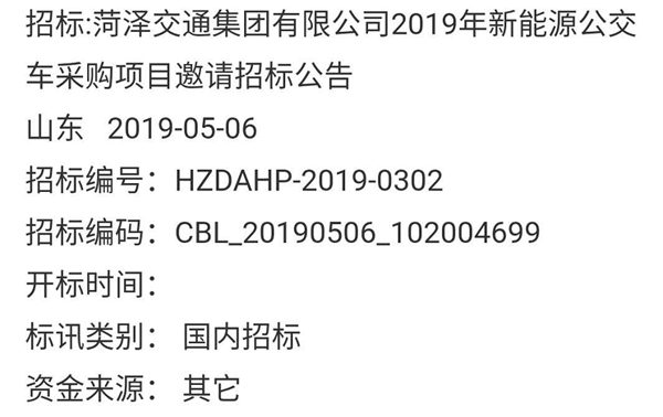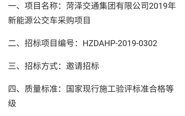 菏泽市交通集团有限公司2019年新能源公交车采购项目邀请招标公告