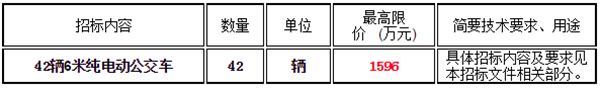 温州市交通运输集团有限公司42辆6米纯电动公交车采购,招标内容及要求如下: