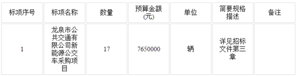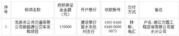 浙江省龙泉市公共交通有限公司新能源公交车采购项目招标公告