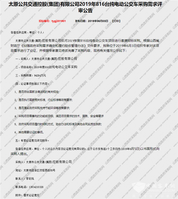- 深圳巴士集团发布100辆10.5米低地板纯电动公交车采购招标公告
