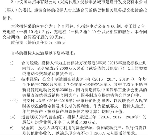 云南省楚雄市绿色公交车(纯电动公交车)(ECX4)采购国际竞争性招标