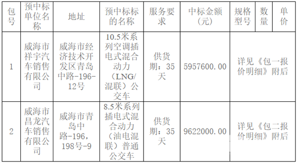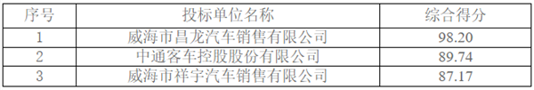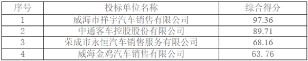 山东省威海市文登区公交车辆采购项目中标公告
