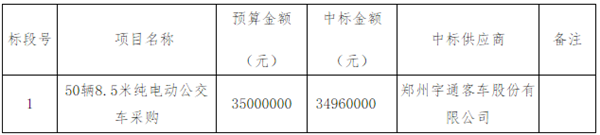 温州德臻招标代理有限公司就温州市交通运输集团有限公司50辆8.5米纯电动公交车采购项目进行公开招标方式国有企业采购(项目编号:WZDZCG-20190530Z),本项目于2019年5月30日发布招标公告,2019年6月19日于温州市行政审批与公共资源交易服务管理中心5号评标室进行评审,经评标委员会综合评定,确定此次中标供应商为: