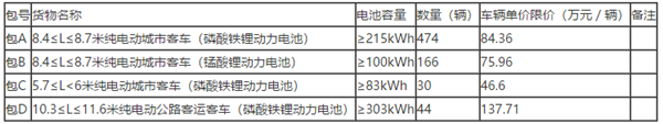 备注:(1)上述预算单价为招标人自付车辆单价限价,不包含中央补贴。中标人需协助招标人申领地方对新能源汽车的财政补贴,其补贴金额归招标人所有。