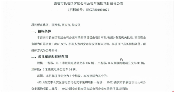 陕西省西安市长安区客运公司公交车采购项目招标公告