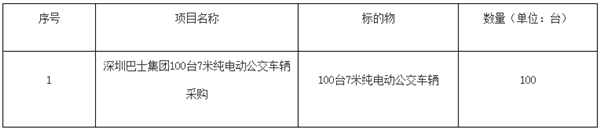 深圳巴士集团100台7米纯电动公交车辆采购招标公告