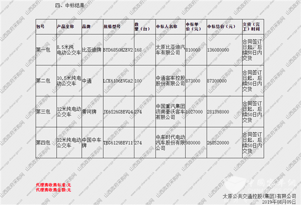 - 广西贵港市公交公司购置100辆新能源公交车项目中标公告