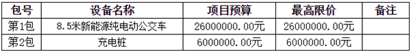 二、招标项目:8.5米新能源纯电动公交车和充电桩采购