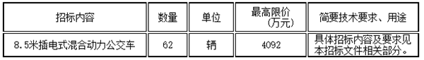 温州交运集团汽车服务有限公司8.5米插电式混合动力公交车,招标内容及要求如下: