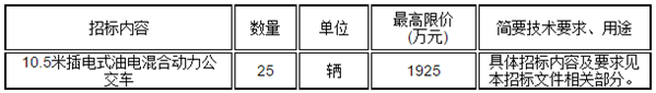 温州交运集团汽车服务有限公司10.5米插电式混合动力公交车,招标内容及要求如下: