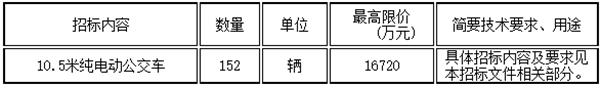 温州交运集团汽车服务有限公司10.5米纯电动公交车采购,招标内容及要求如下: