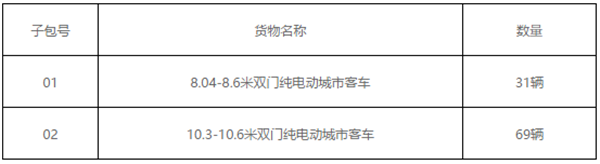 2、项目名称:广州珍宝(白马)2019年8.04-8.6米双门纯电动城市客车和10.3-10.6米双门纯电动城市客车采购项目