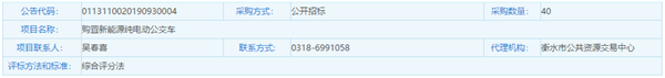 河北省衡水市公交总公司6米级纯电动新能源公交车采购项目公开招标公告