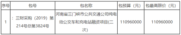 河南省三门峡市公交公司纯电动公交车和充电站融资项目(二次)招标公告
