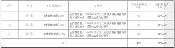 6、项目概况:枞阳县城乡公交一体化PPP项目2019年度采购新能源公交车100辆,各包具体划分如下: