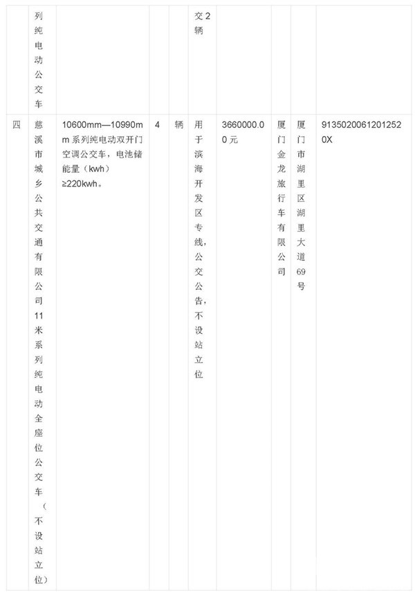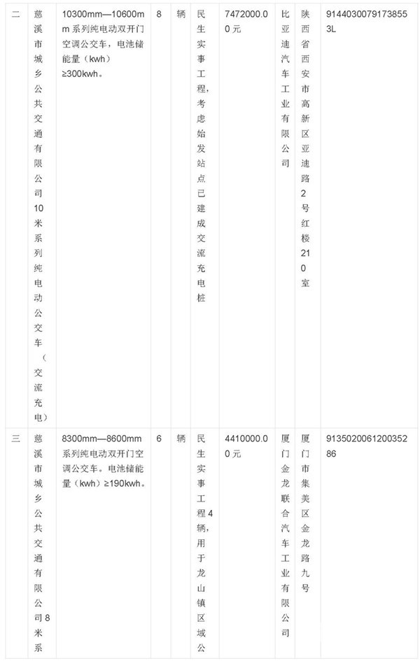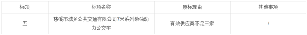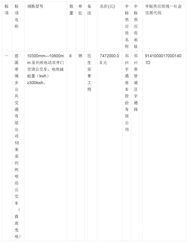 浙江慈溪市城乡公共交通有限公司公交车项目中标(成交)结果公告
