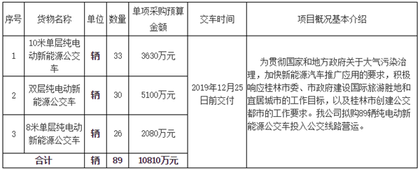 广西省桂林市公交公司纯电动新能源公交车第三批采购公开招标公告