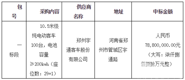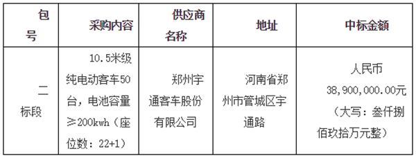 河南省焦作市公交公司融资租赁购置纯电动城市客车项目(二次)中标公告
