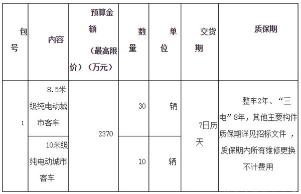 - 深圳巴士集团发布100辆10.5米低地板纯电动公交车采购招标公告