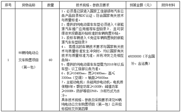 项目名称:90辆纯电动公交车购置项目(第一包)