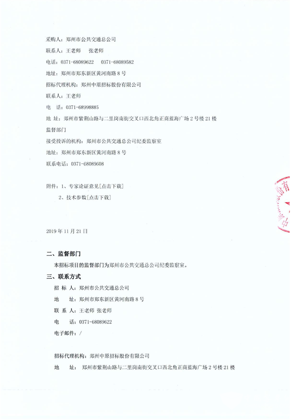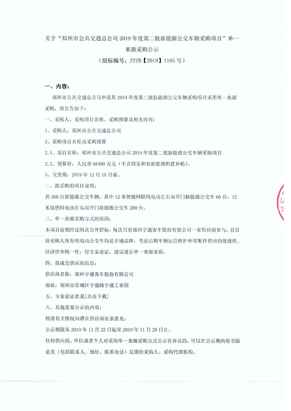 河南省郑州市公共交通总公司2019年度第二批新能源公交车辆采购项目公示