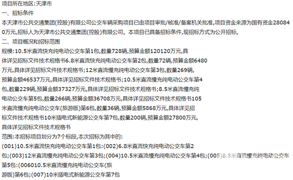 天津市公共交通集团有限公司公交车采购项目招标公告