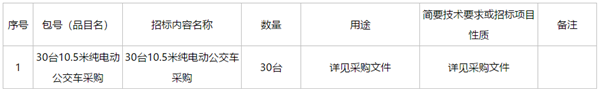 贵州省贵阳市公交公司30台10.5米纯电动公交车采购公开招标公告