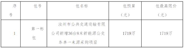 1、采购内容:汝州市公共交通运输有限公司新增36台8米新能源公交车;